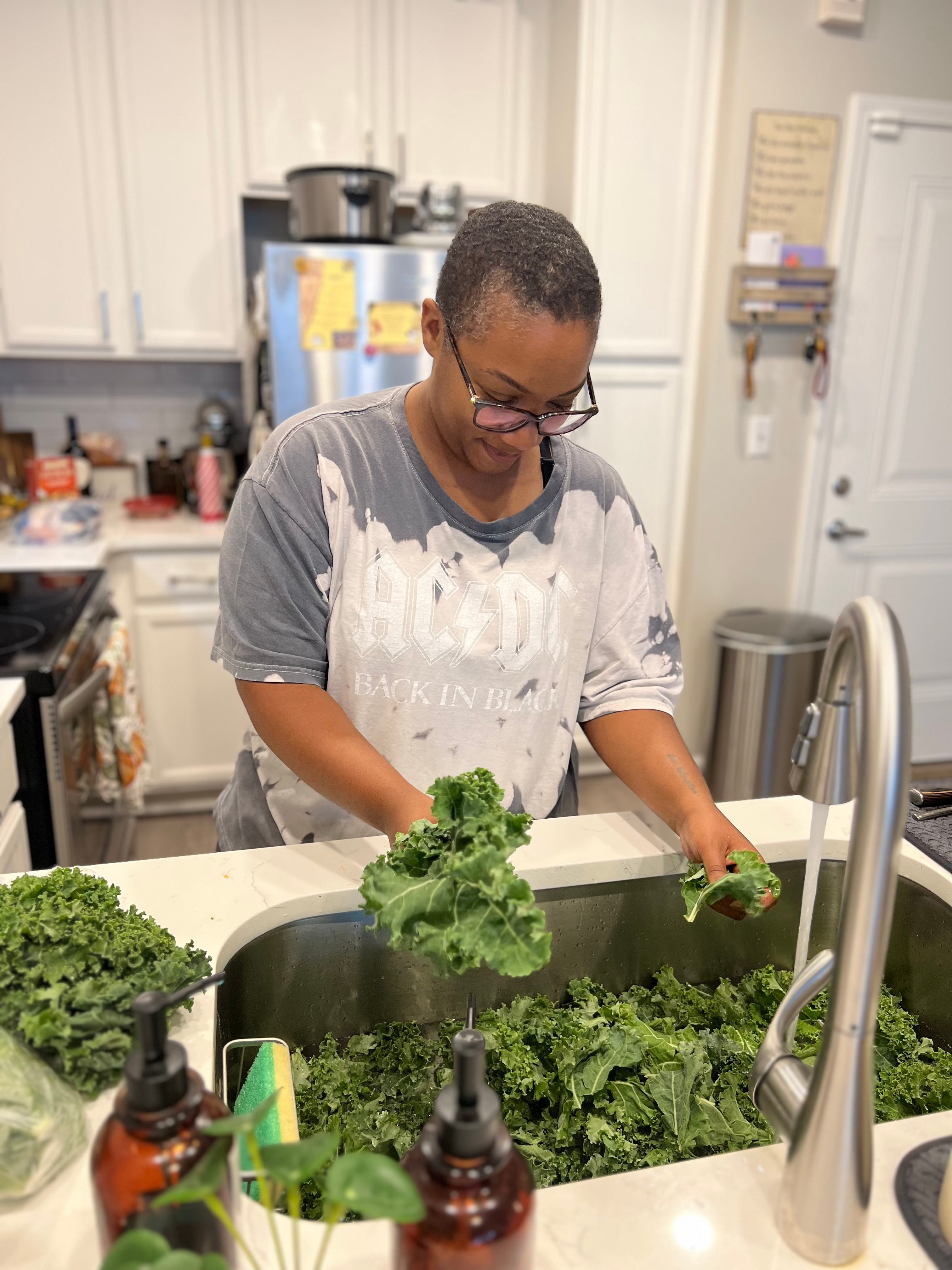 My family Thanksgiving was just me and Mom this year, and we had a great time! We cooked all day and she definitely put her foot in that mac-and-cheese! I even got to do my favorite Thanksgiving activity… picking and washing the greens! I have no idea why that’s the part that feels like Thanksgiving to me, but so be it!